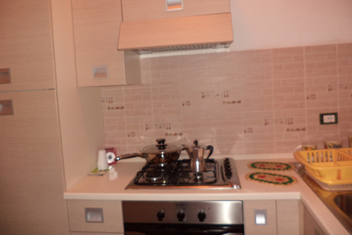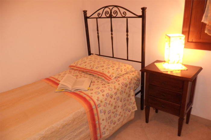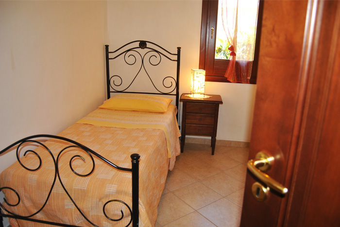 The flats we are offering you come equipped with every comfort: a large bedroom, a small one with single bed, a kitchen fully-equipped, bathroom with shower and sofa-bed in the living area. There is also a terrace facing the garden and the bay.